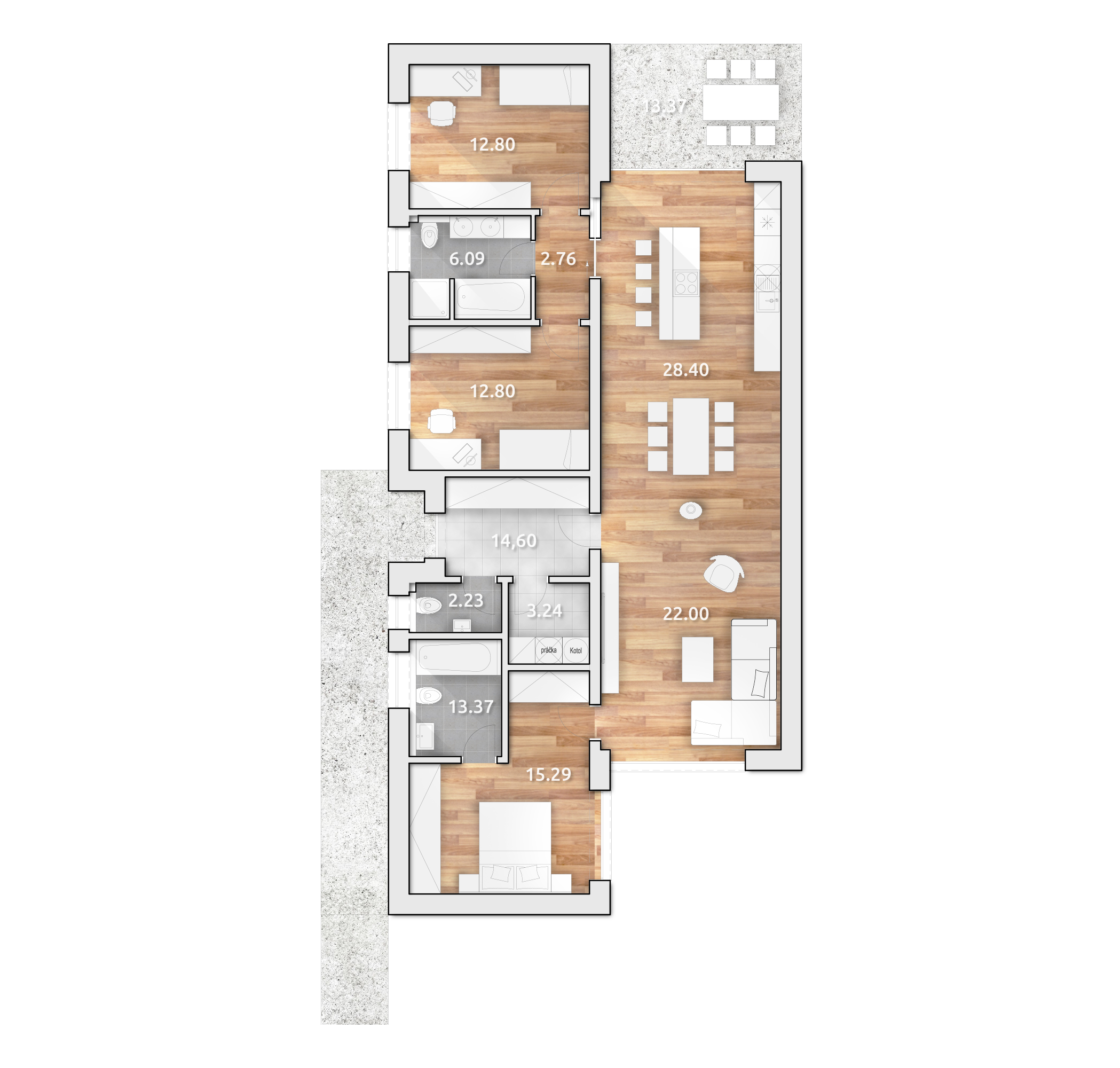 Moderný 4-izbový bungalov s pultovou strechou o veľkosti 117,98 m2