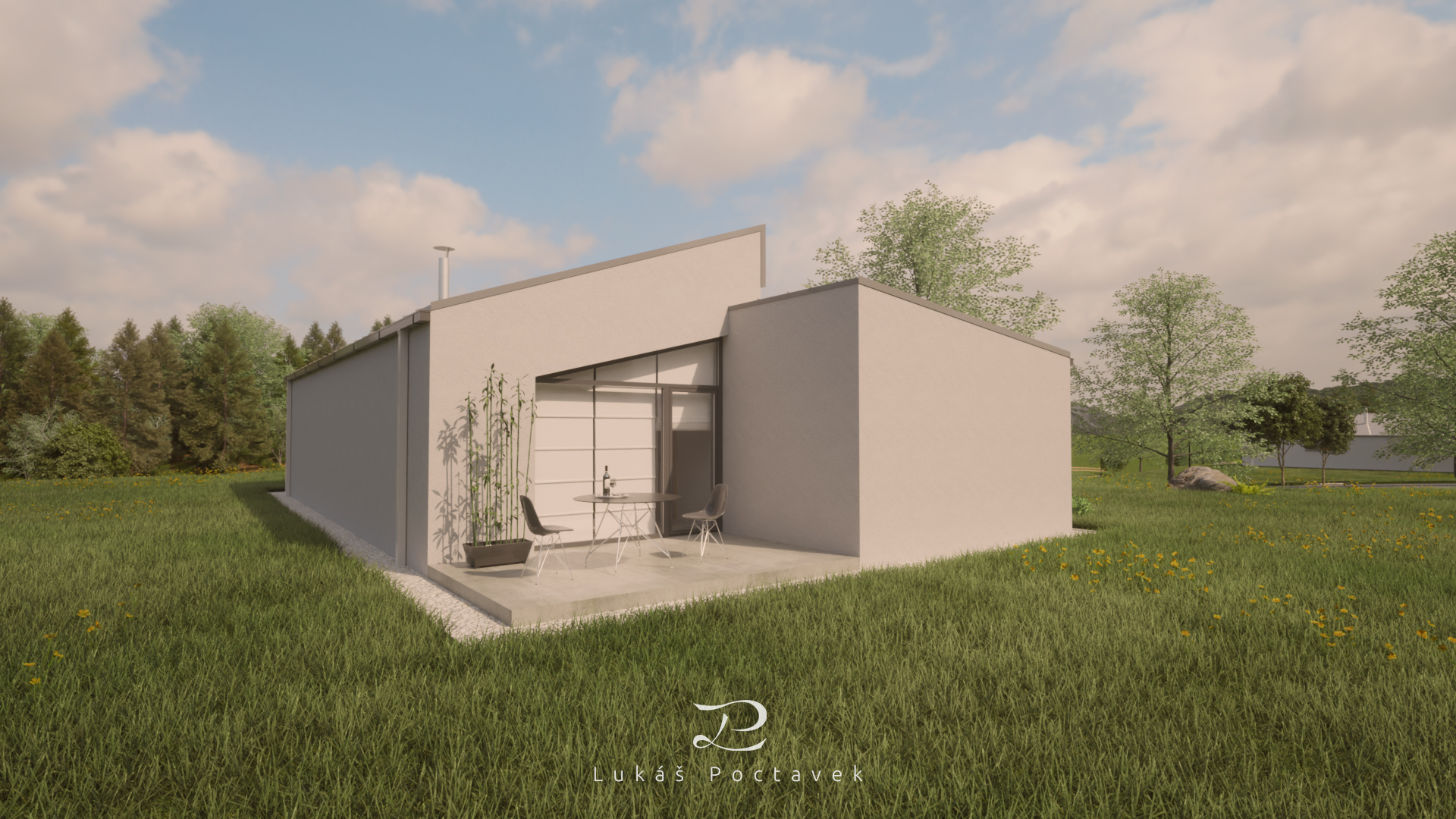 Rodinný dom, ktorý je neobyčajný svojím veľkým otvoreným priestorom v obývačke a kuchyni. V exteriéri zas dominujú jednoduché tvary,dve hmoty obdĺžnikového pôdorysu ukončené šikmou pultovou strechou, jednoduchou na realizáciu.